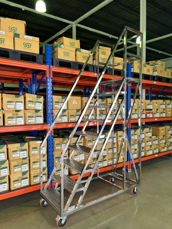 บันไดอุตสาหกรรมติดล้อ เป็นบันไดที่ผลิตจากสแตนเลส อลูมิเนียม และเหล็กพ่นสี บันไดติดล้อเหมาะกับงานที่ใช้หยิบของในที่สูง ต้องเคลื่อนย้ายบันไดบ่อยๆ ส่วนมากที่เลือกใช้บันไดจะเป็นโรงงานที่มีโกดัง และชั้นวางของสูงๆ บันไดเข็นติดล้อ มีให้เลือกหลากหลายขนาด สูงสุด ที่ 5 เมตร มีโครงสร้างของบันไดที่แข็งแรง วัสดุที่ใช้ผลิตผ่านมาตรฐาน มอก. ทั้งหมด